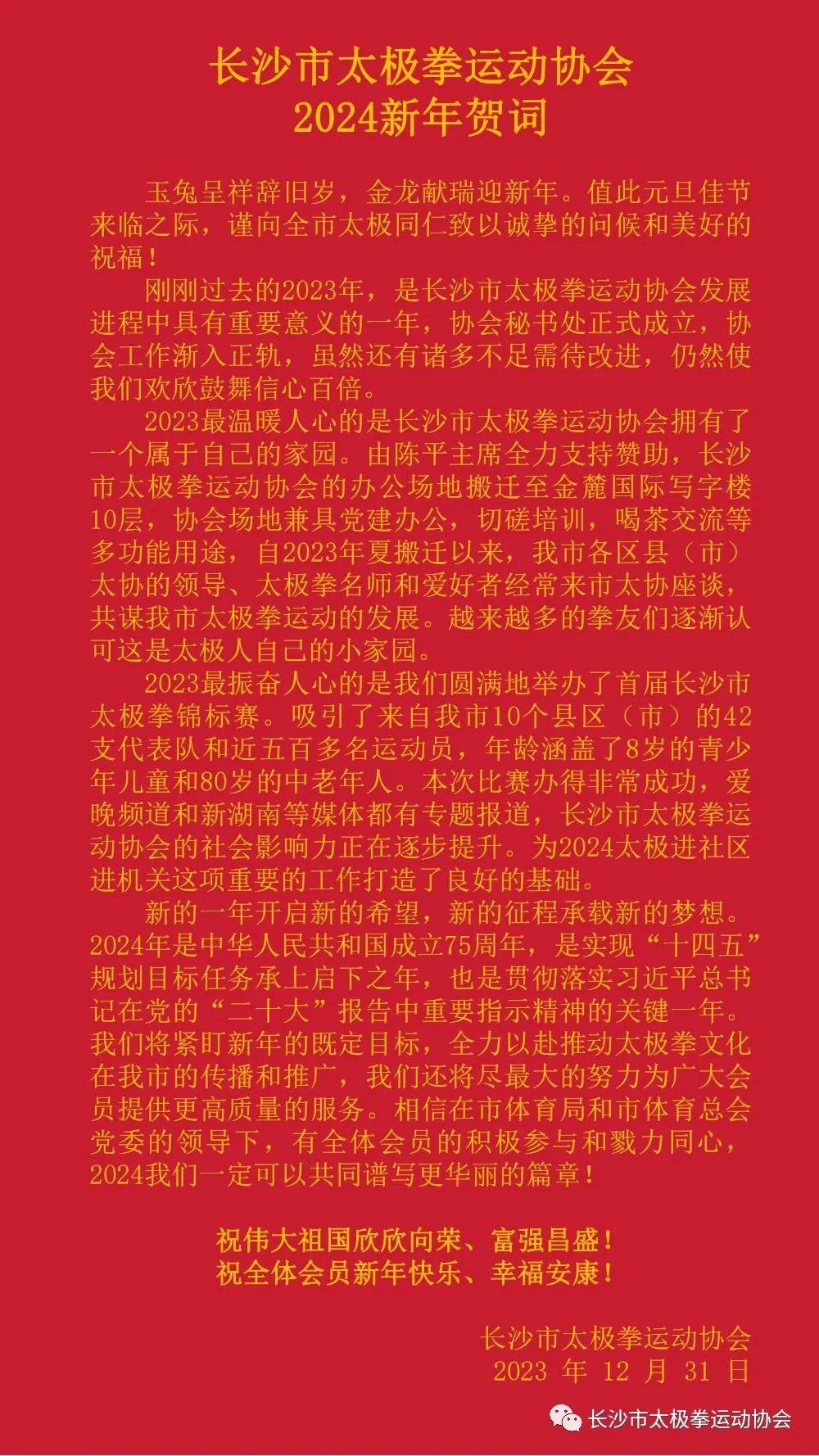 长沙市太极拳运动协会2024新年贺词